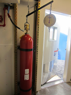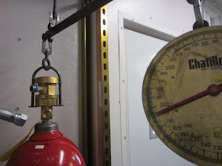 The photo below shows a high pressure CO-2 bottle about to get weighed: