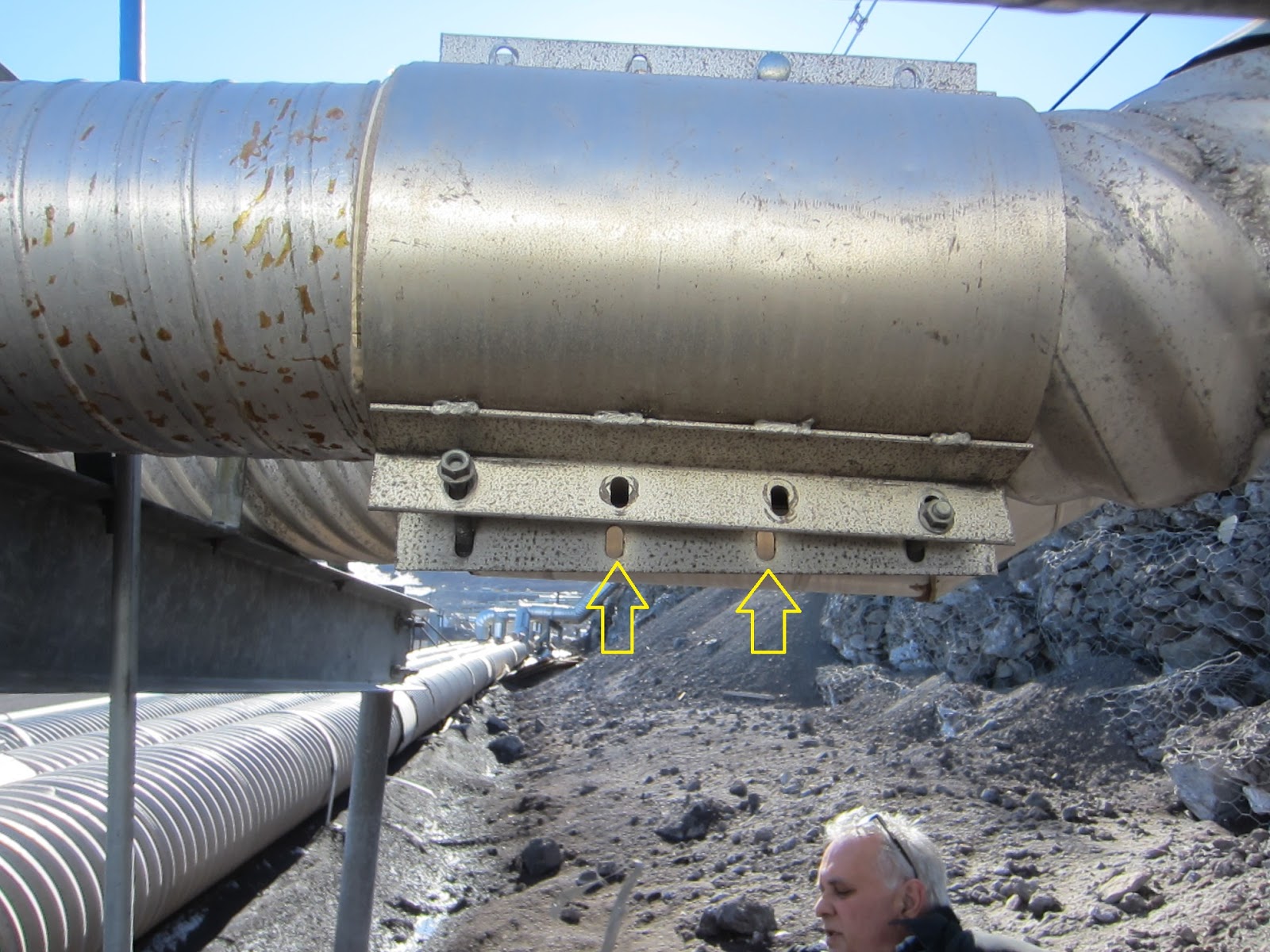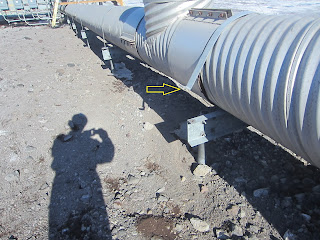 Photo below shows a fractured CO-2 discharge indicator. Note the other indicator in the distance.